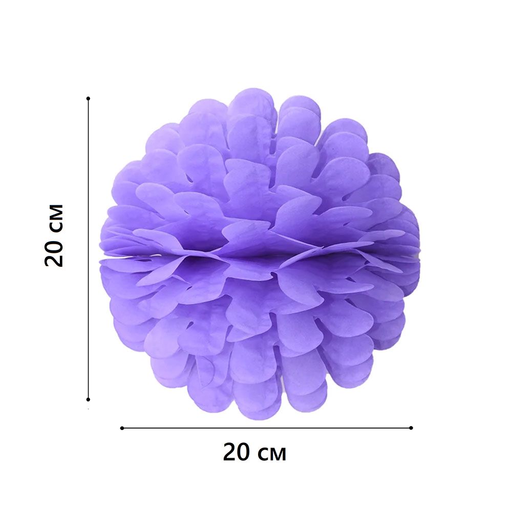 Бумажное украшение Цветочный шар-соты 20 см, сиреневый