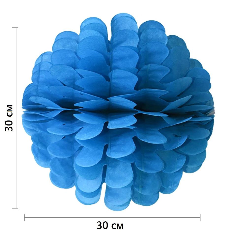 Бумажное украшение Цветочный шар-соты 30 см, синий