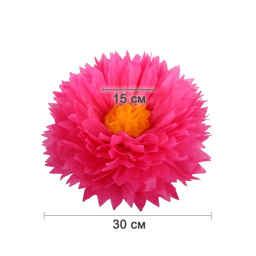 Бумажный цветок 30 см амарантовый+ярко-желтый