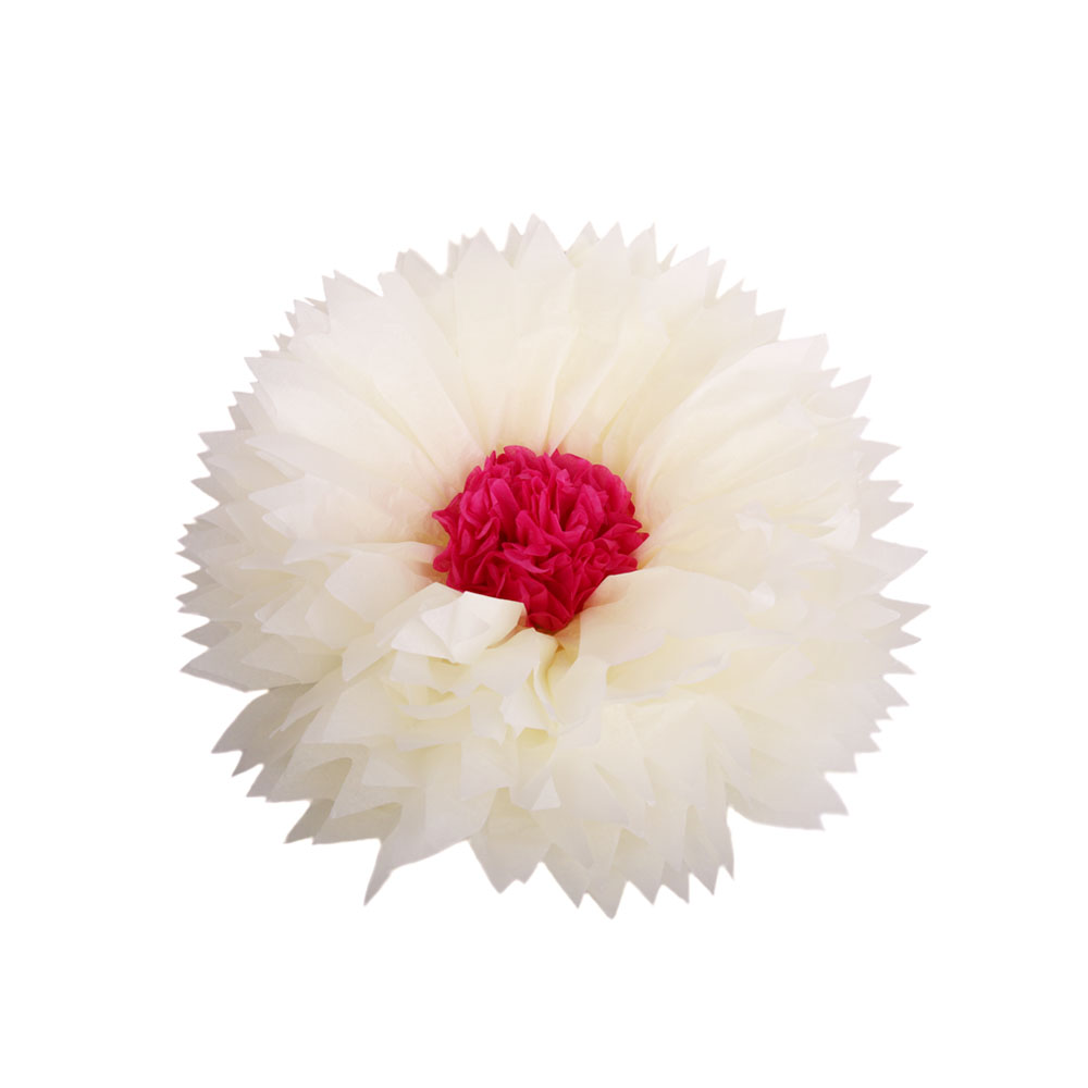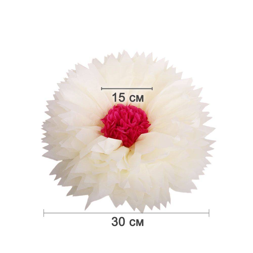Бумажный цветок 30 см айвори+малиновый