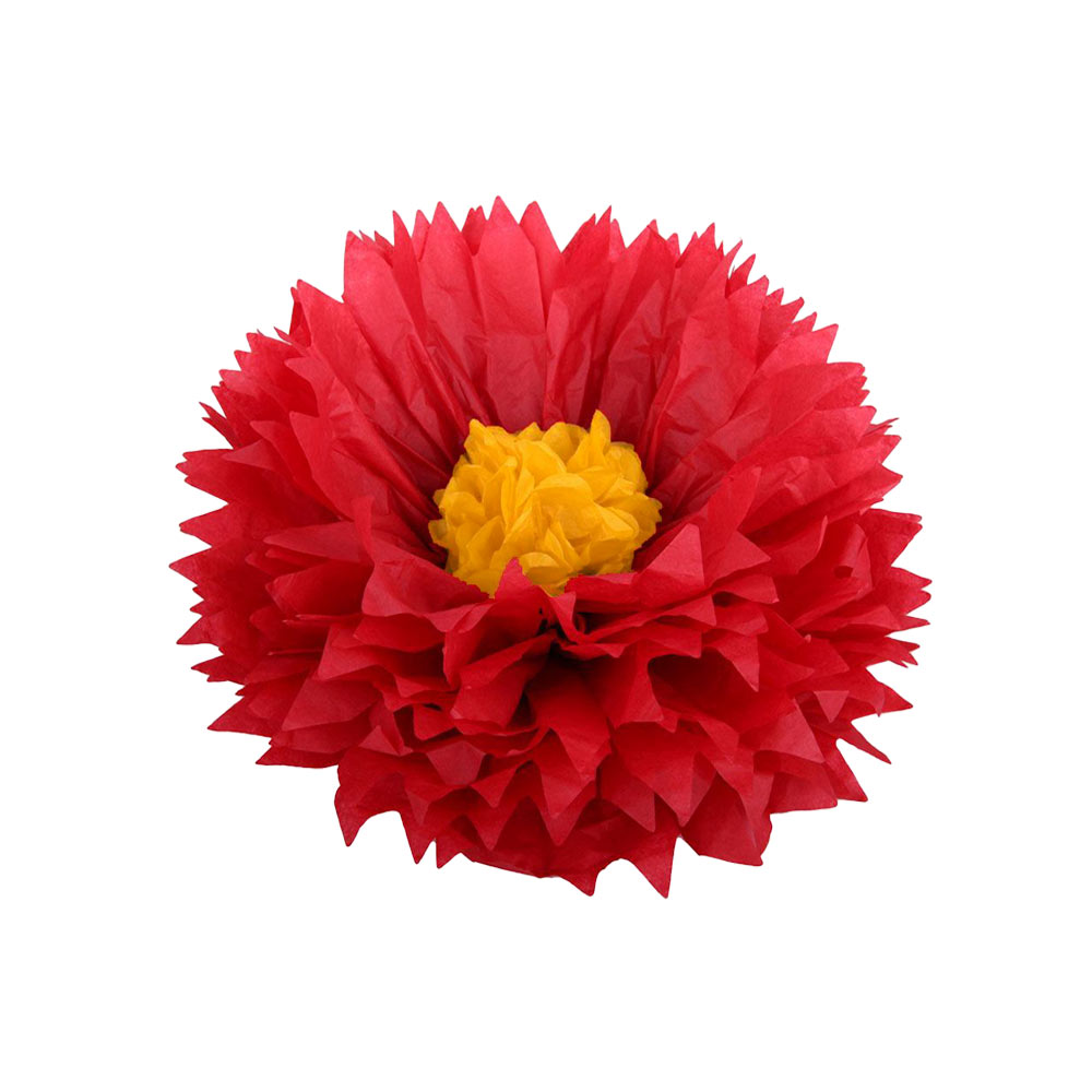 Бумажный цветок 30 см красный+желтый