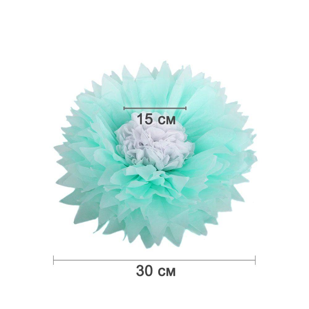 Бумажный цветок 30 см мятный+белый