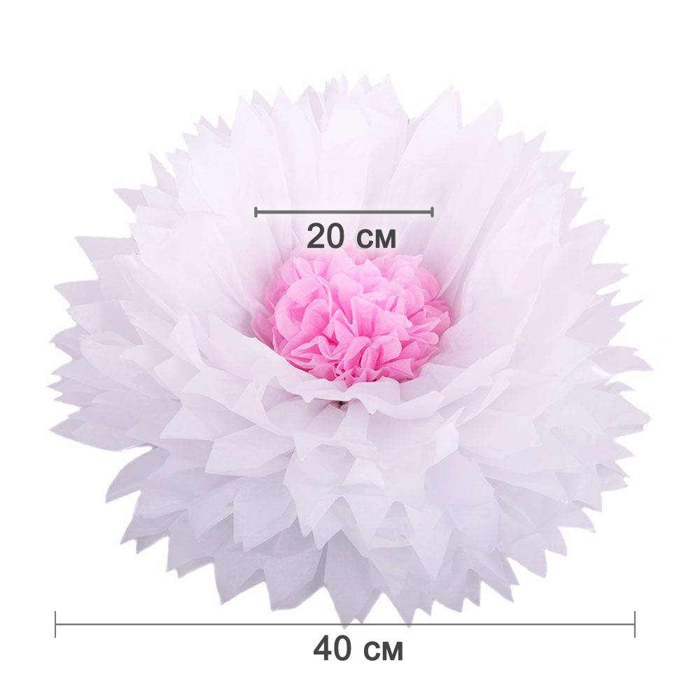 Бумажный цветок 40 см белый+розовый