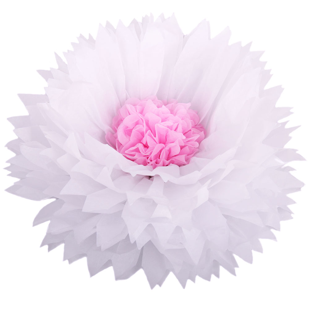 Бумажный цветок 50 см белый+розовый