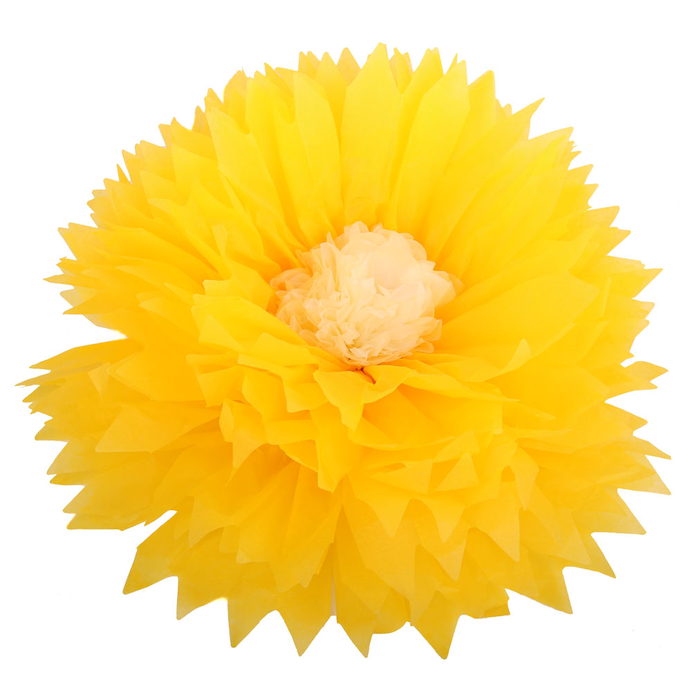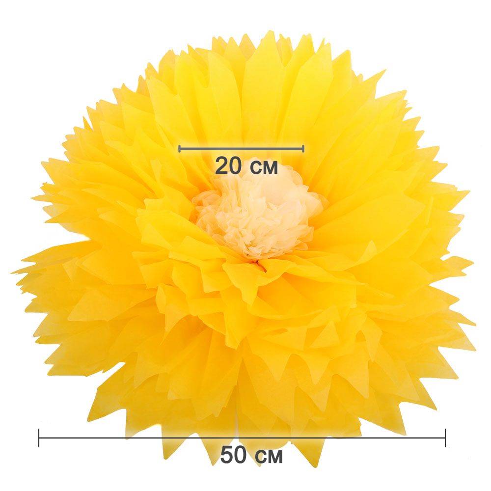 Бумажный цветок 50 см ярко-желтый+айвори