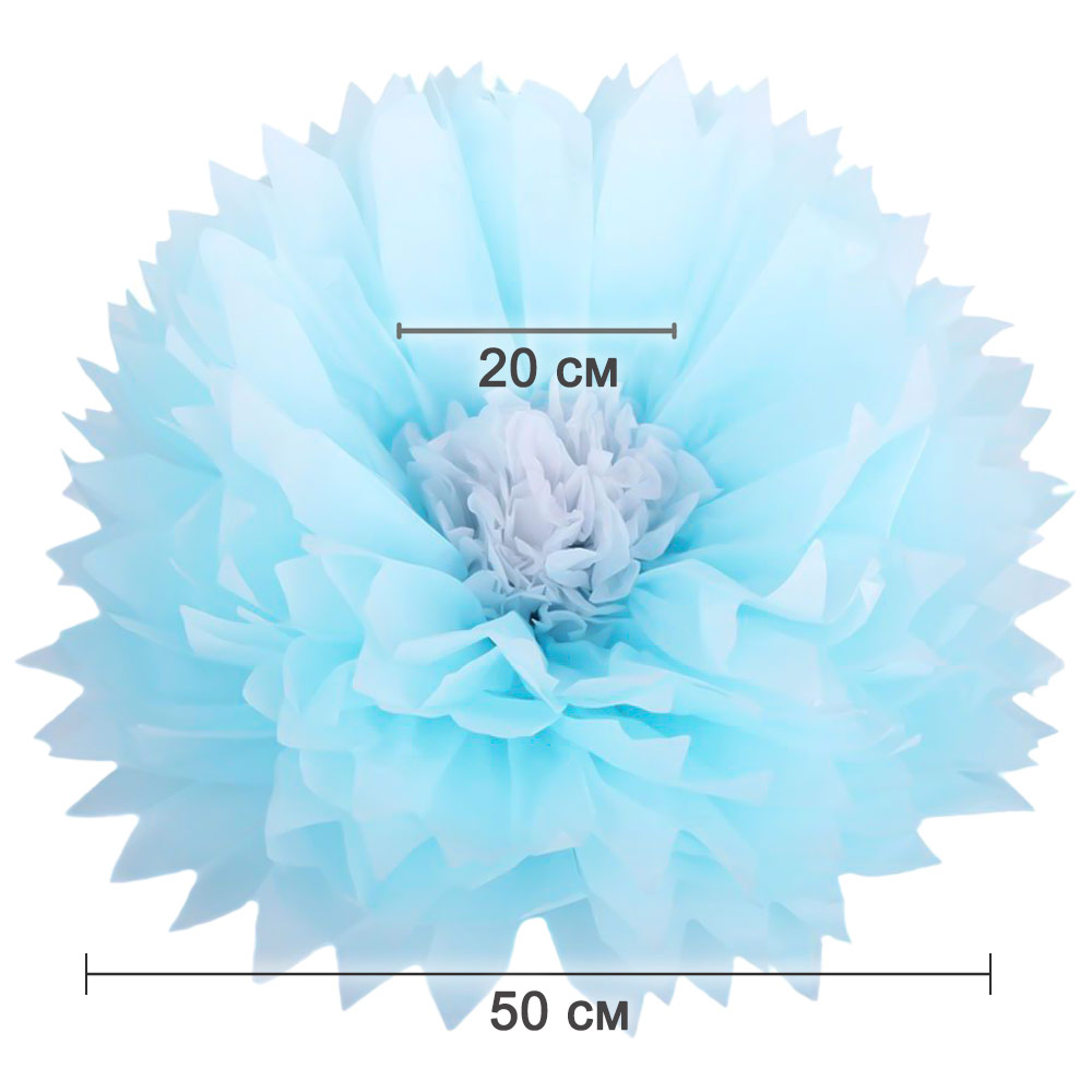 Бумажный цветок 50 см голубой+белый