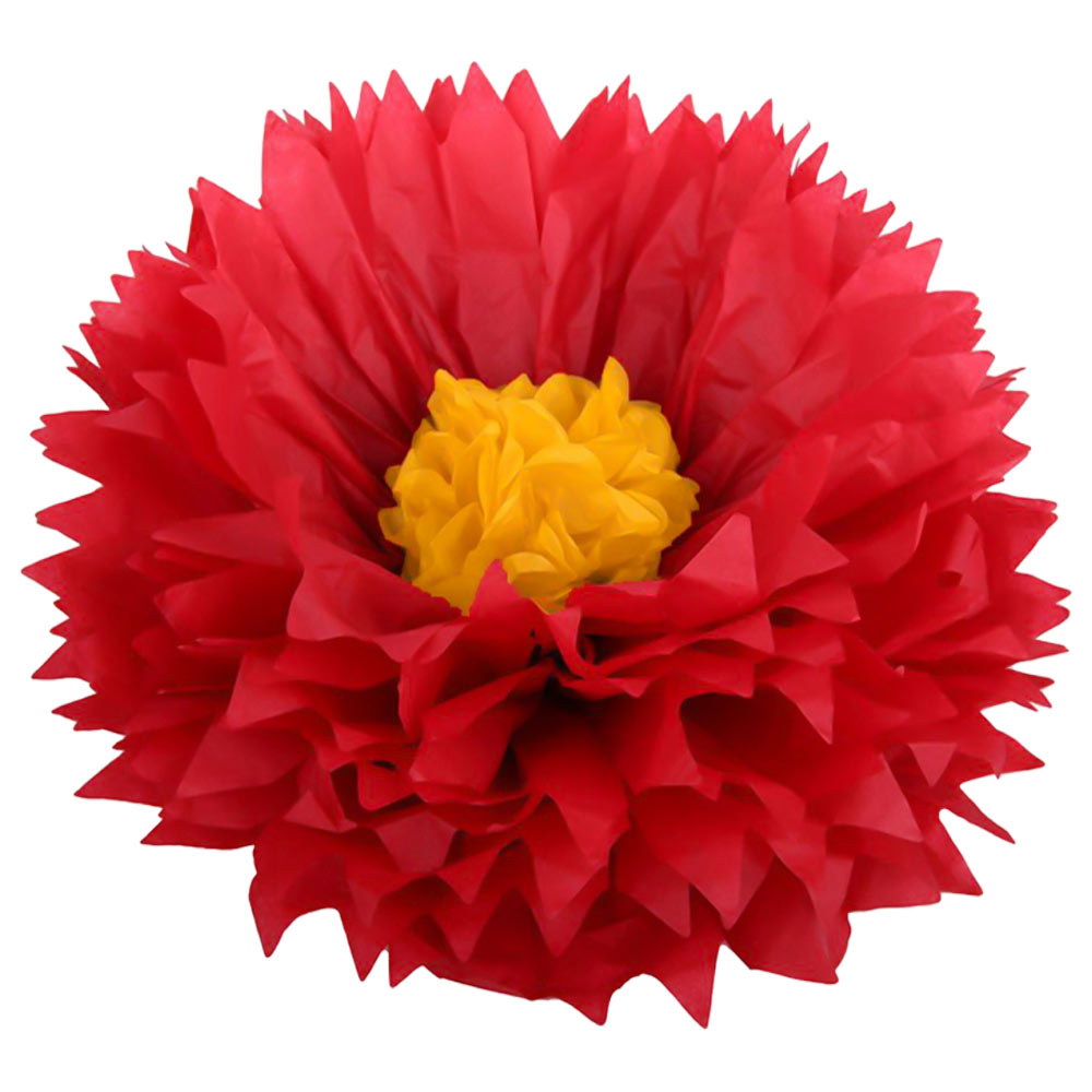 Бумажный цветок 50 см красный+желтый