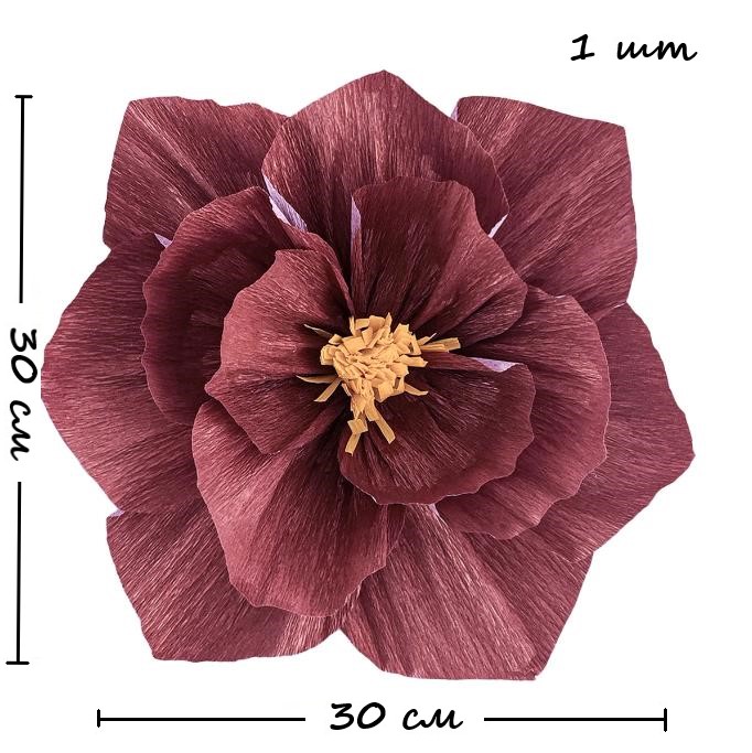 Бумажный цветок гофрированный 30 см бордовый+белый