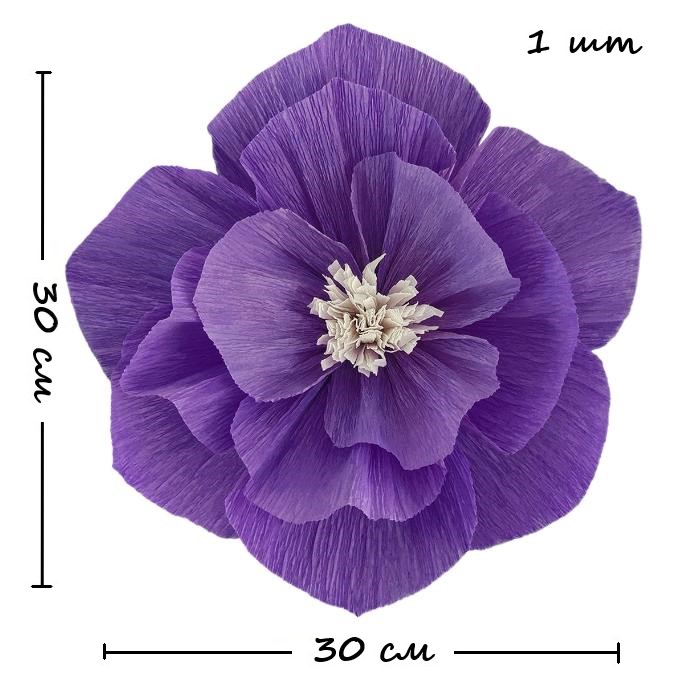 Бумажный цветок гофрированный 30 см фиолетовый+белый