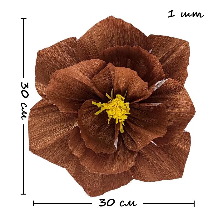 Бумажный цветок гофрированный 30 см коричневый+желтый