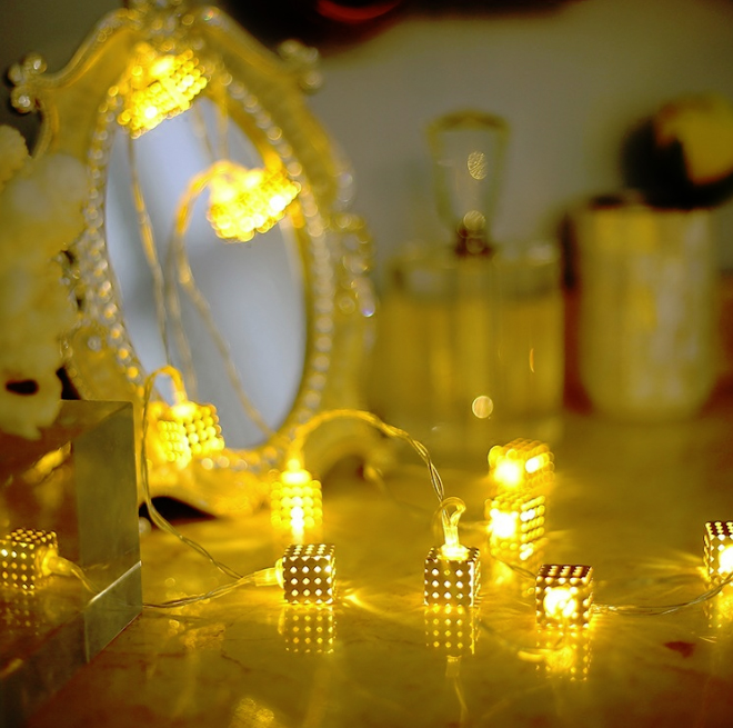Гирлянда Кубики золотые 2 м 20 ламп от батареек