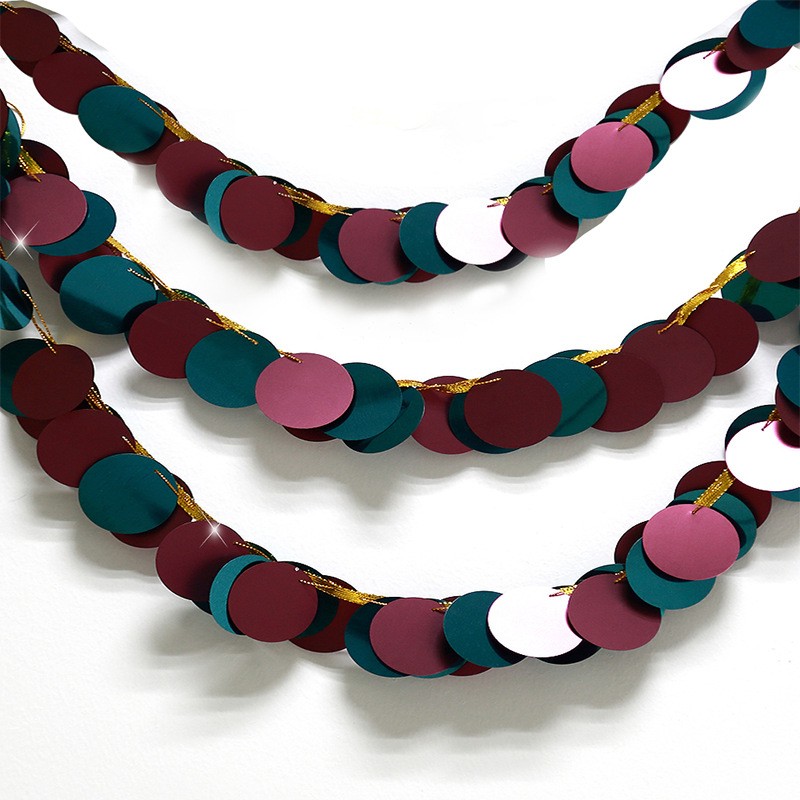 Гирлянда кружочки пайетки бордовый+изумрудный, 2,5 м