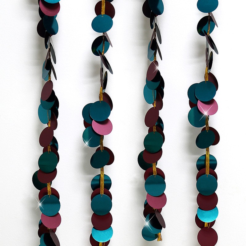 Декоративная гирлянда представляет собой расположенные на нити кружочки пайеток.