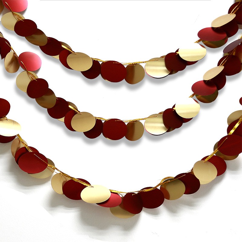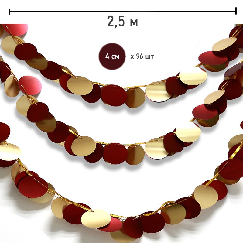 Гирлянда кружочки пайетки красный+золото, 2,5 м