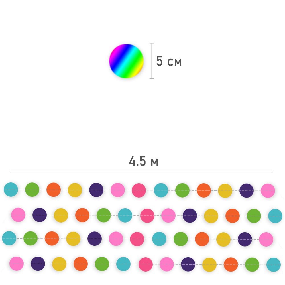 Гирлянда "Кружочки" бумажные 5 см х 4,5 м, Разноцветная