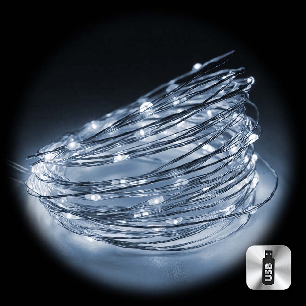 Нить Роса медь, 10 м х 100 диодов от USB, белый
