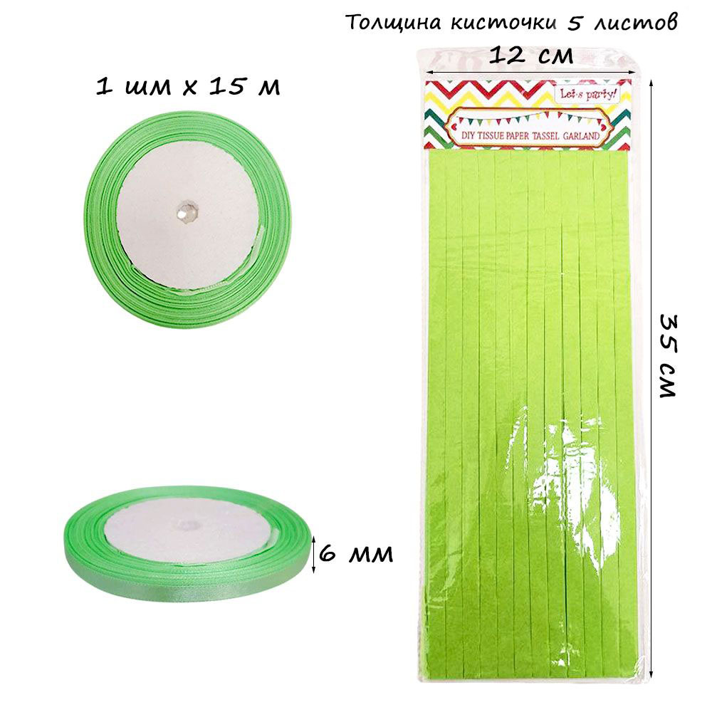 Гирлянда тассел 12 кисточек по 5 листов, салатовый