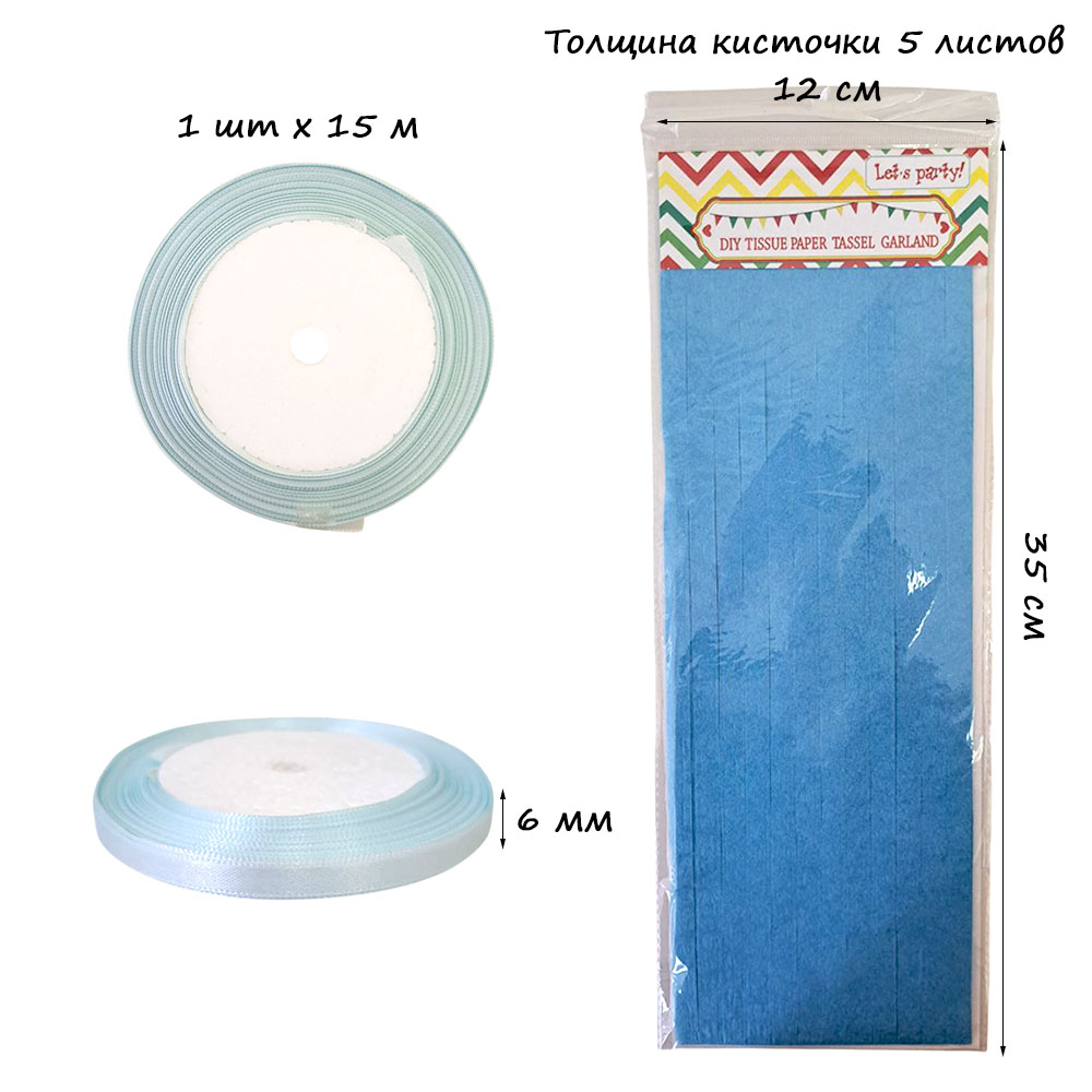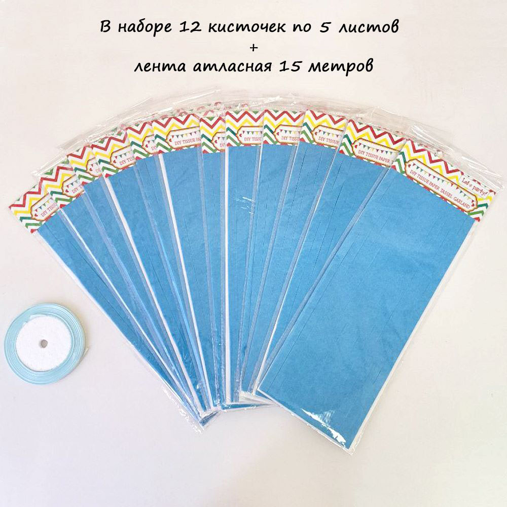 Гирлянда тассел 12 кисточек по 5 листов, синий