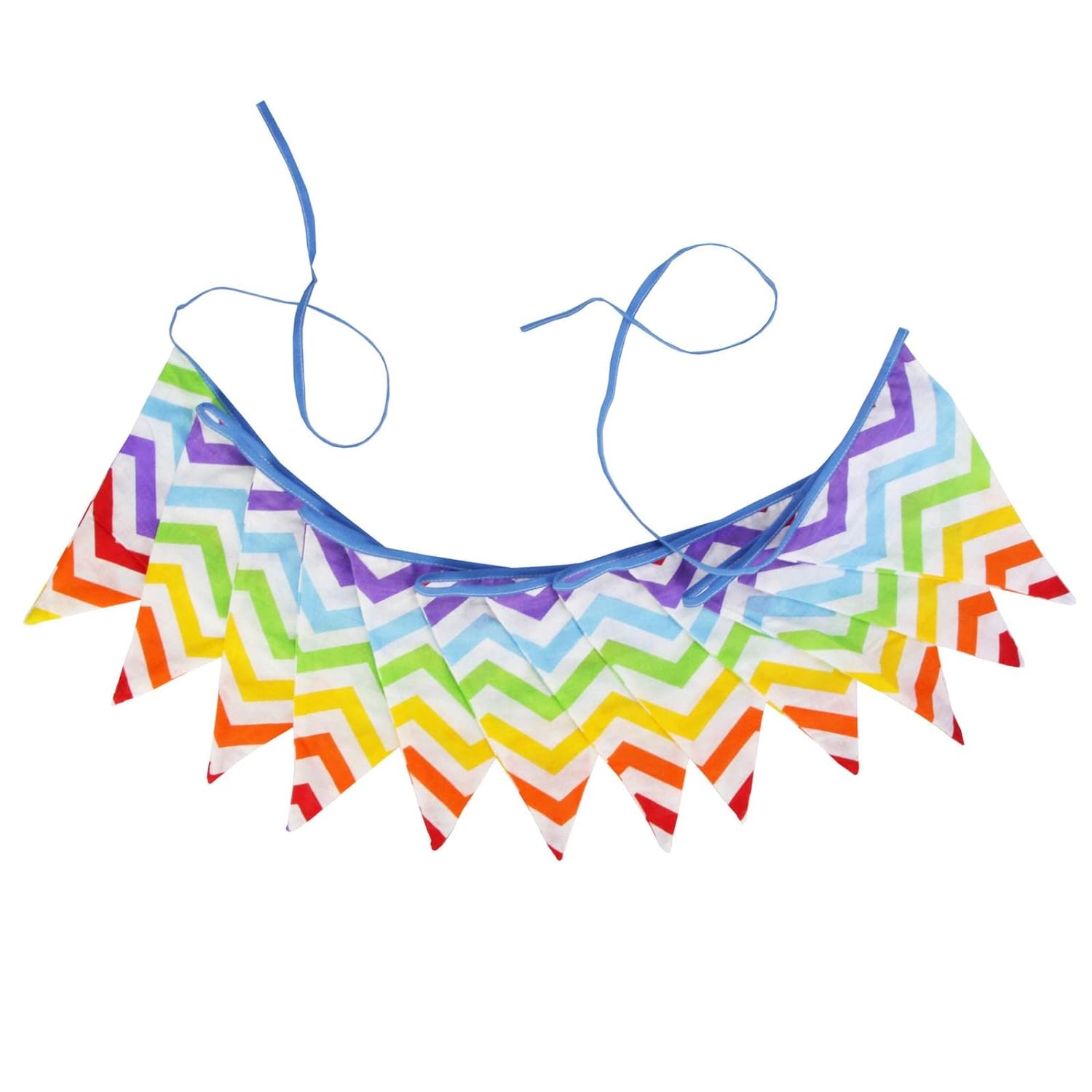 Гирлянда состоит из 12 флажков. Расстояние между флажками - 6 см, общая длина составляет 4 м.