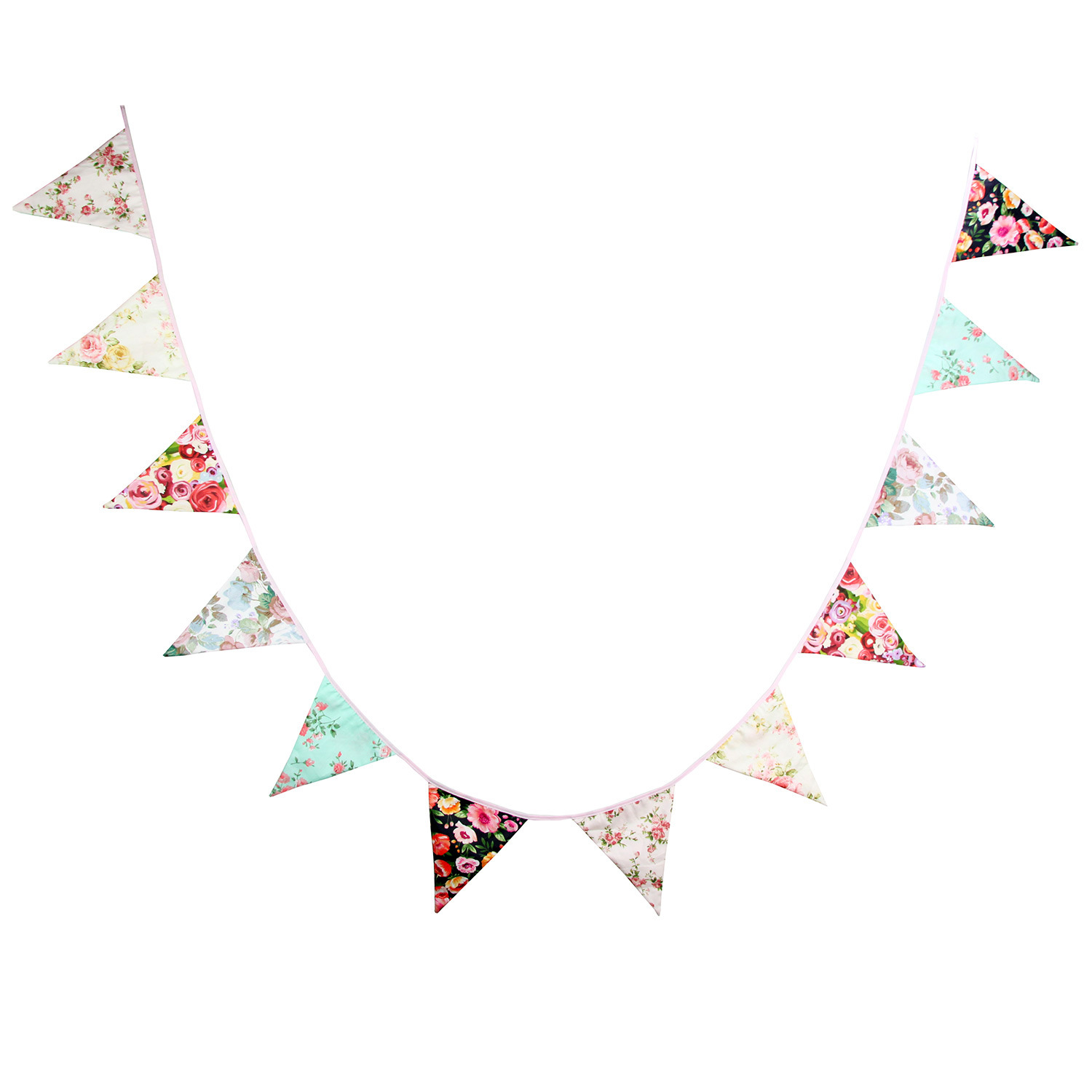 Гирлянда состоит из 12 флажков. Расстояние между флажками - 6 см, общая длина составляет 4 м.