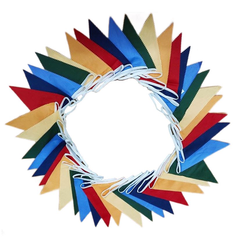 Гирлянда состоит из 42 флажков, из них длина вымпела 9 м, а длина лямок с обеих сторон 45-50 см