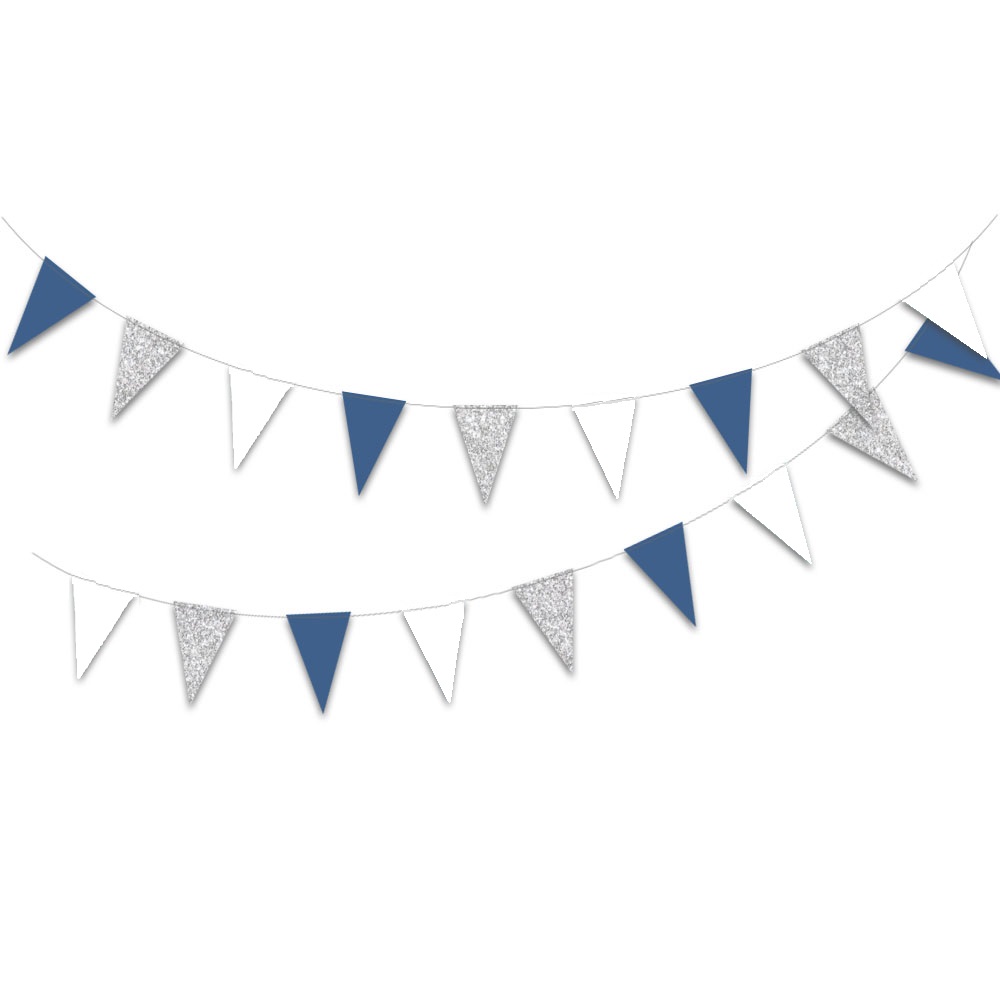 Гирлянда-вымпел 9 х 14 см белый+серебро+синий 4 м