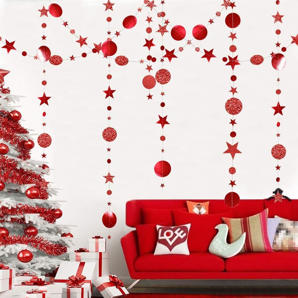 Гирлянда Звезды/Кружочки 4 м металлик/блеск, красный