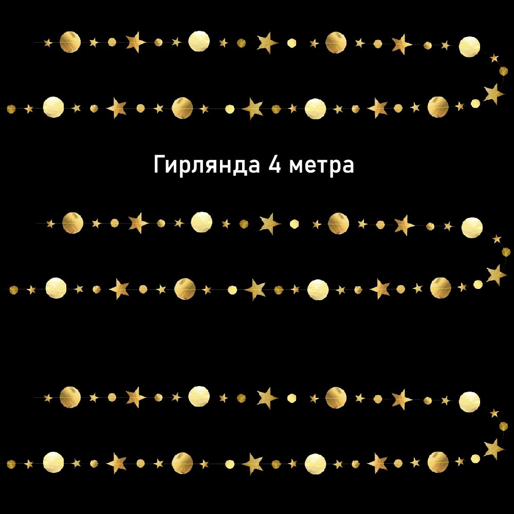 Гирлянда Звезды/Кружочки 4 м металлик/глянец, Золото