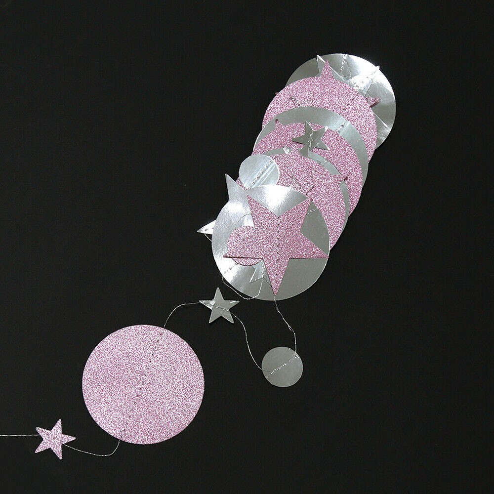 Гирлянда Звезды/Кружочки 4 м металлик Серебро/ блеск Розовый