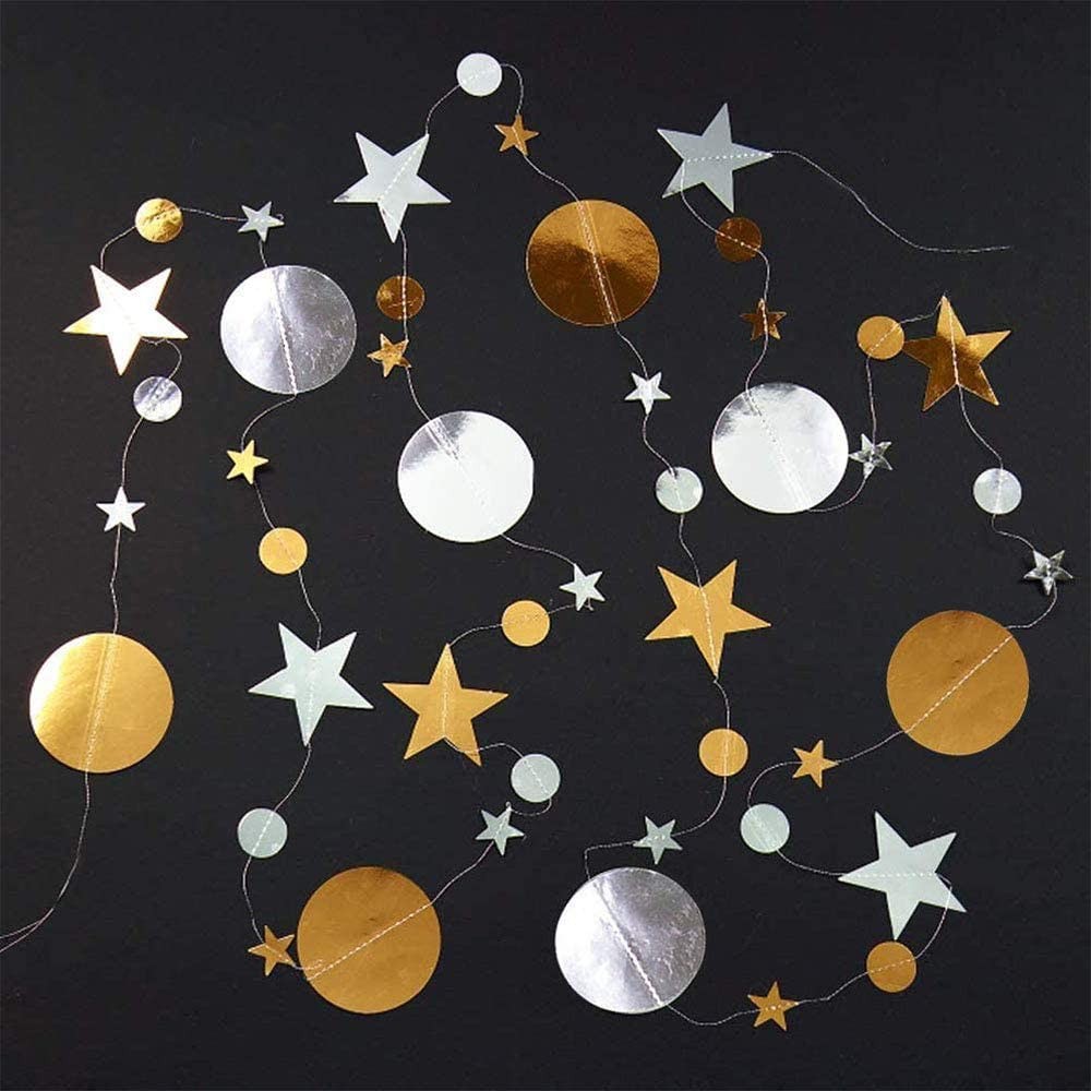 Гирлянда Звезды/Кружочки 4 м металлик Золото/Серебро