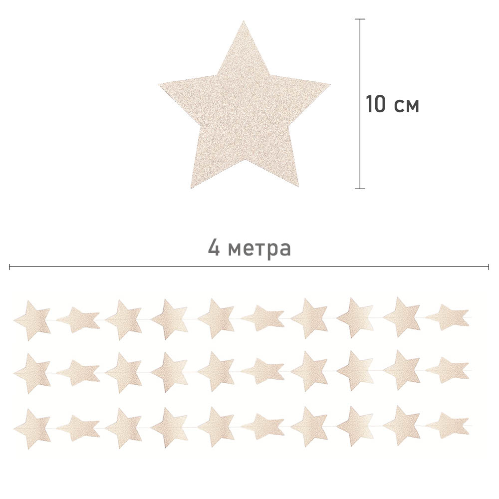 Гирлянда "Звезды" перламутровые 10 см х 4 м, Бежевый