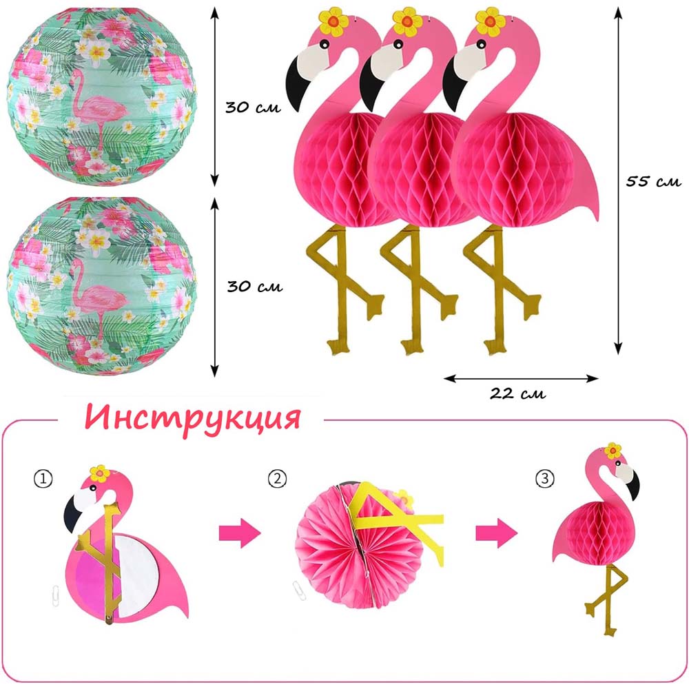 Сотовый шар с фламинго, 3 шт: