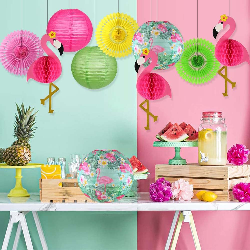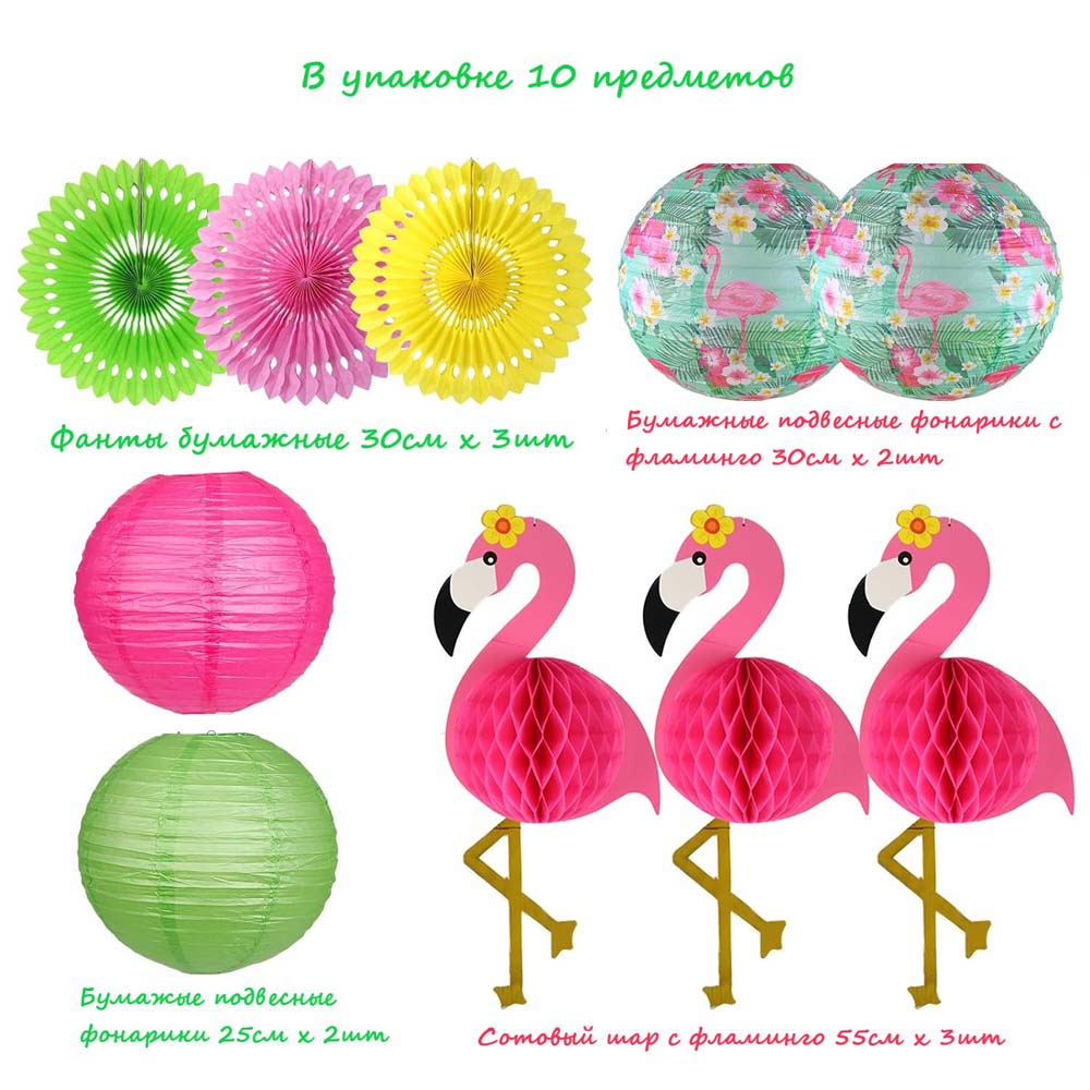 Бумажные подвесные фонарики с фламинго, 2 шт:
