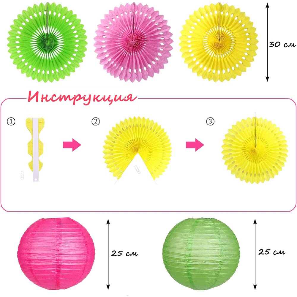 Бумажные подвесные фонарики, 2 шт (розовый и зелёный):