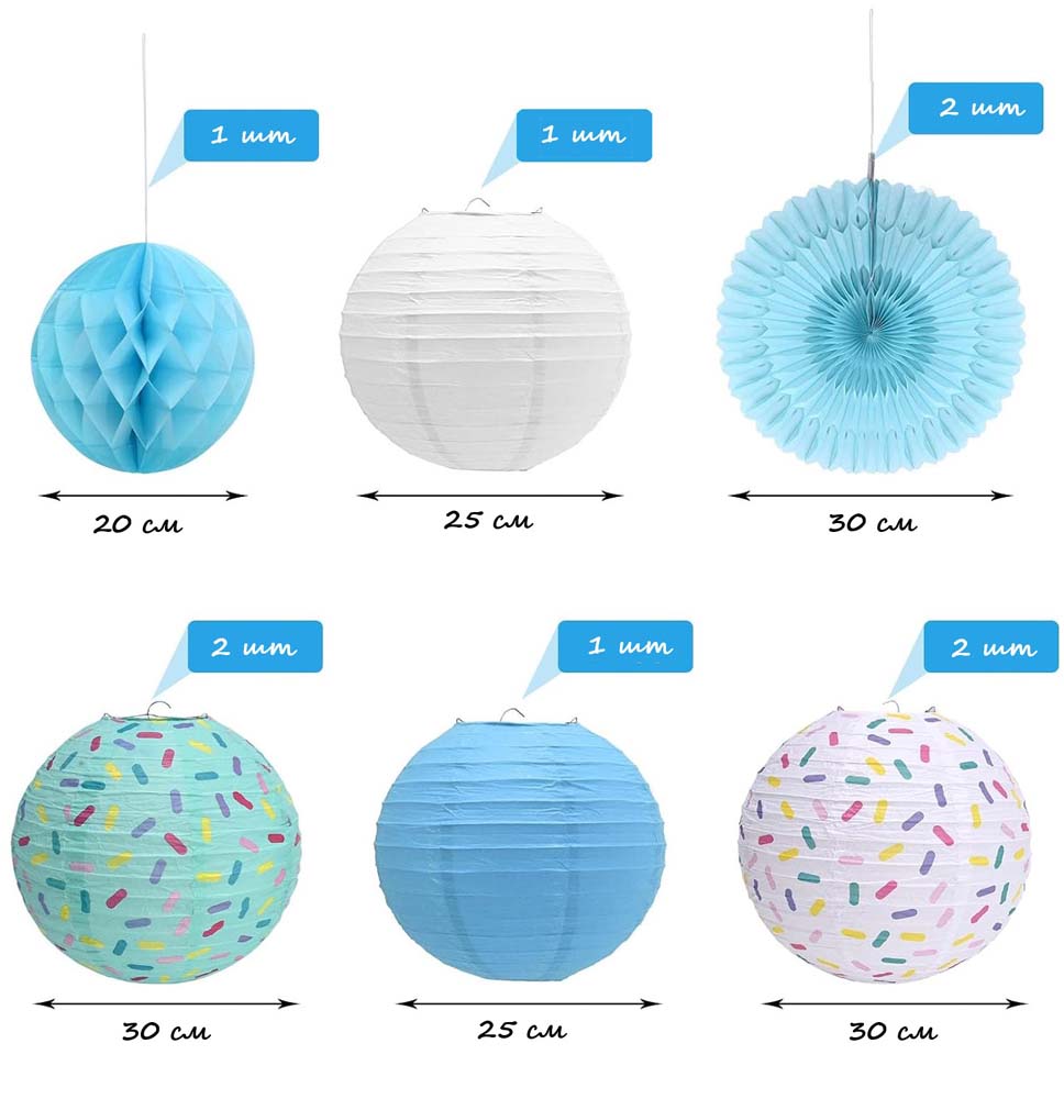 Подвесные бумажные фонарики синий и белый, 2 шт: