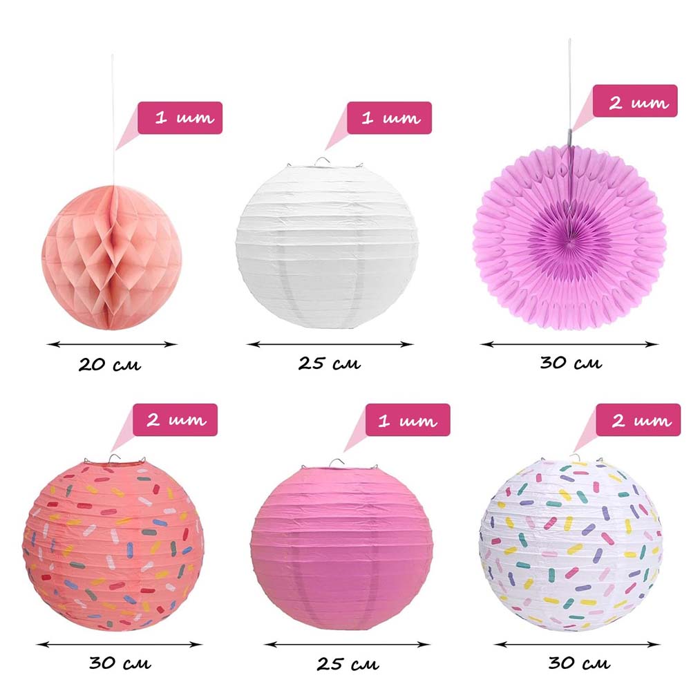 Бумажные подвесные фонарики, 2 шт (белый и розовый):