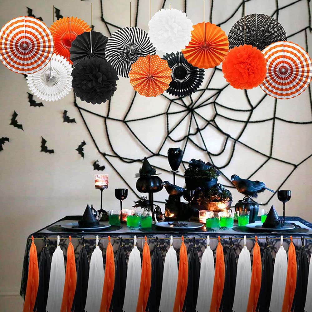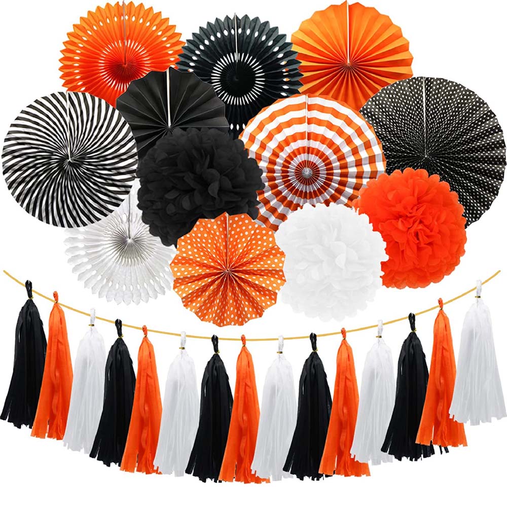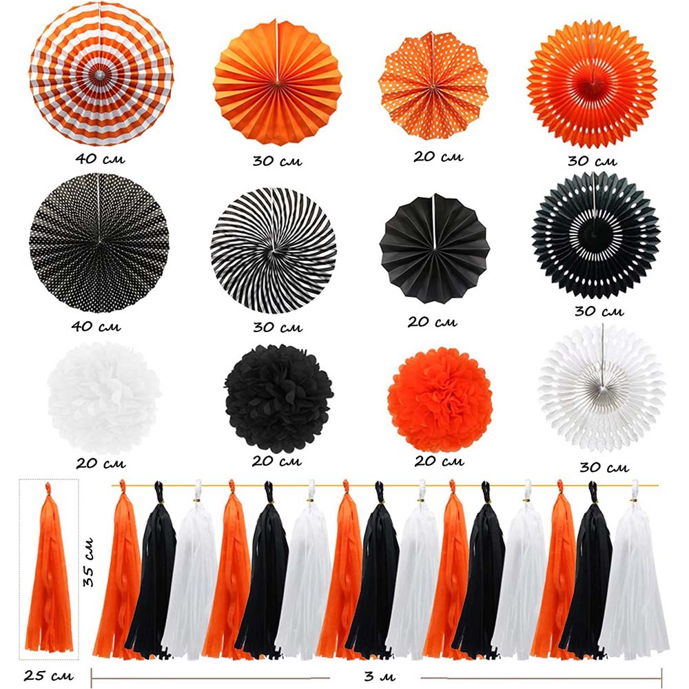 Гирлянда тассел 3 м, тчёрный+оранжевый+белый