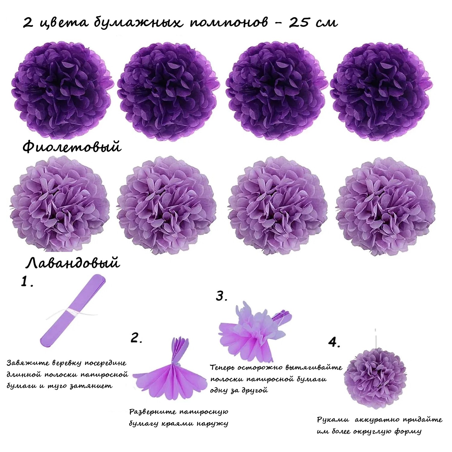 Помпоны из бумаги тишью, 8 шт: