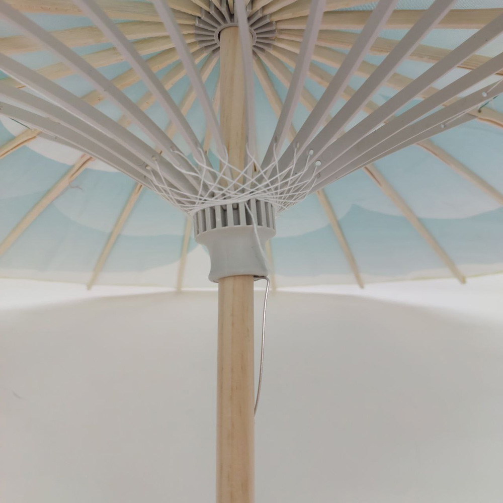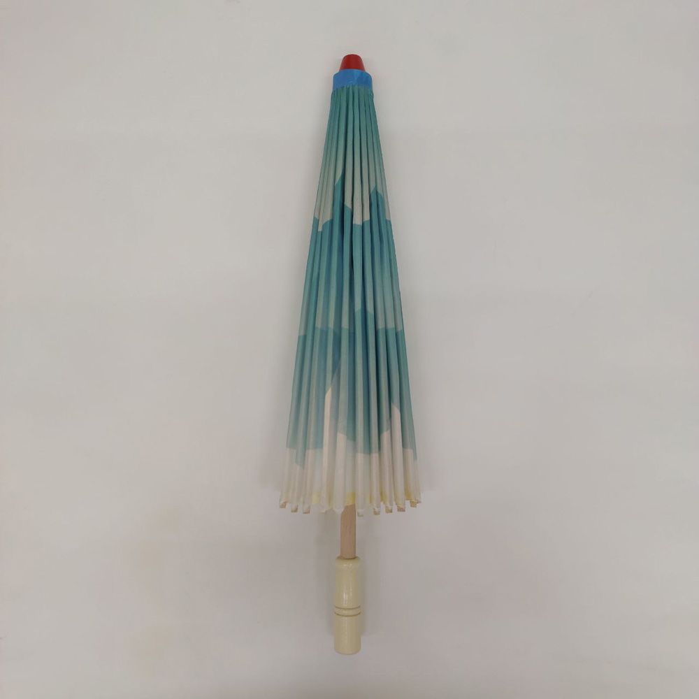 Каркас зонтика выполнен из дерева,купол зонта изготовлен из водоотталкивающего материала,который не пропускает воду.
