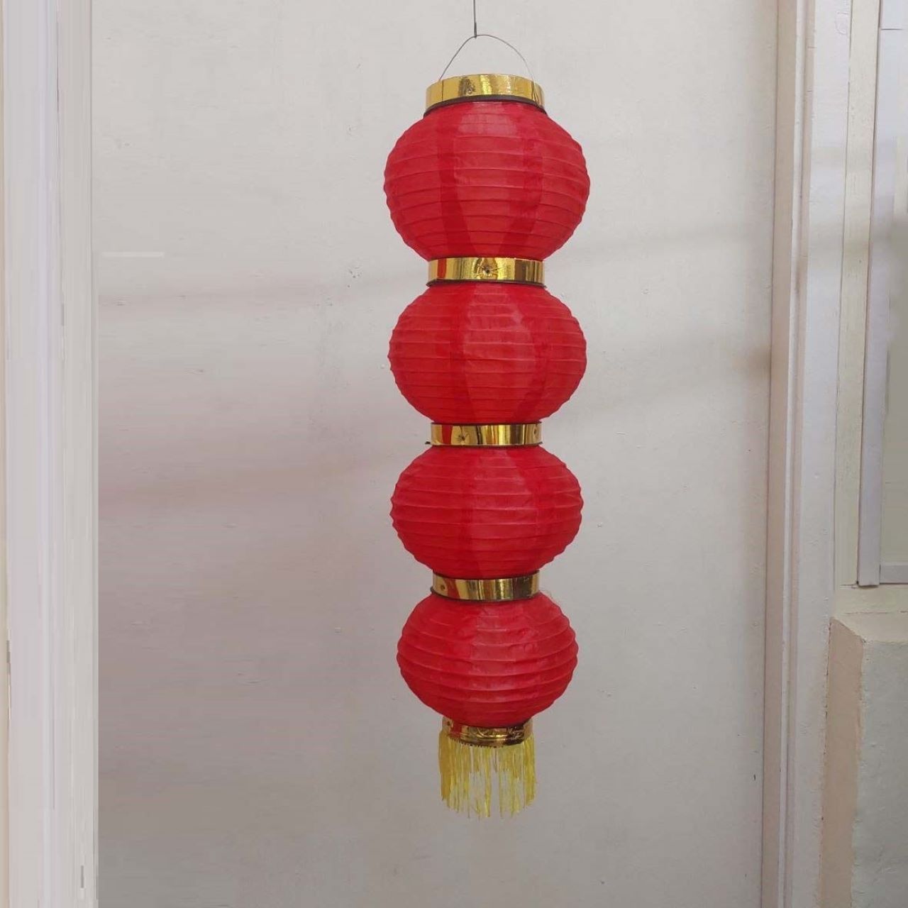 Круглый китайский фонарь состоит из четырех ярусов диаметром 20 см каждый.