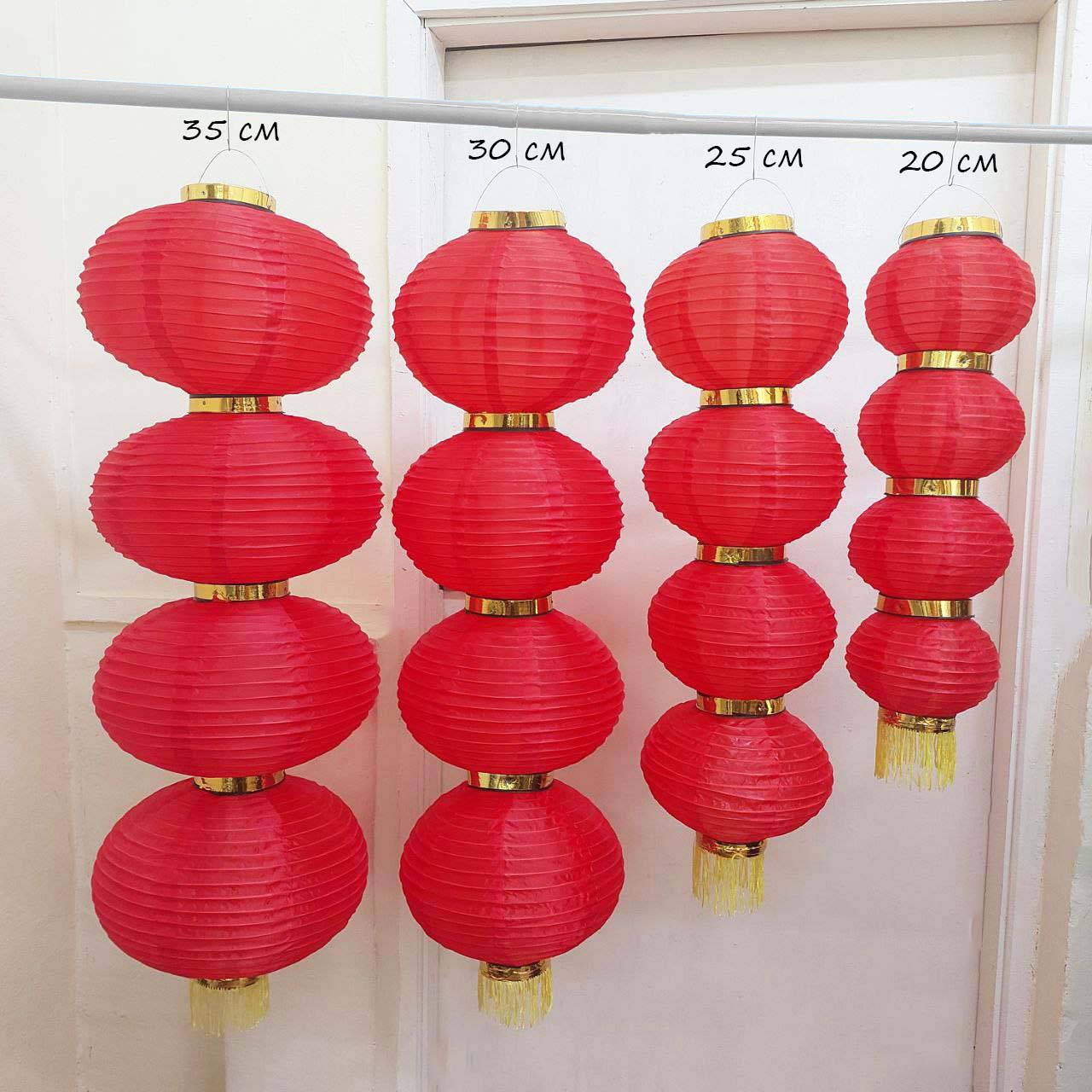 Круглый китайский фонарь состоит из четырех ярусов диаметром 25 см каждый.