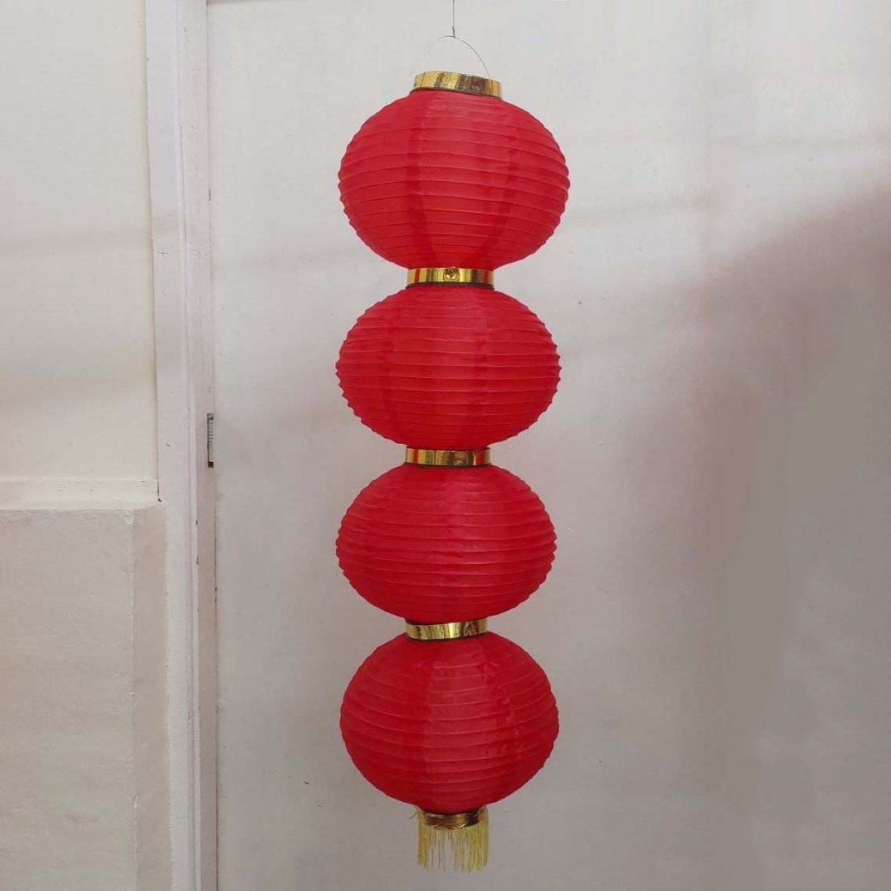 Круглый китайский фонарь состоит из четырех ярусов диаметром 30 см каждый.