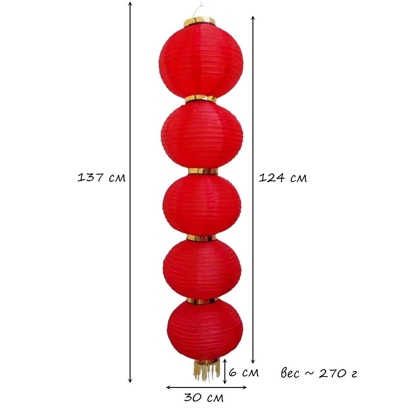 Круглый китайский фонарь состоит из пяти ярусов диаметром 30 см каждый.