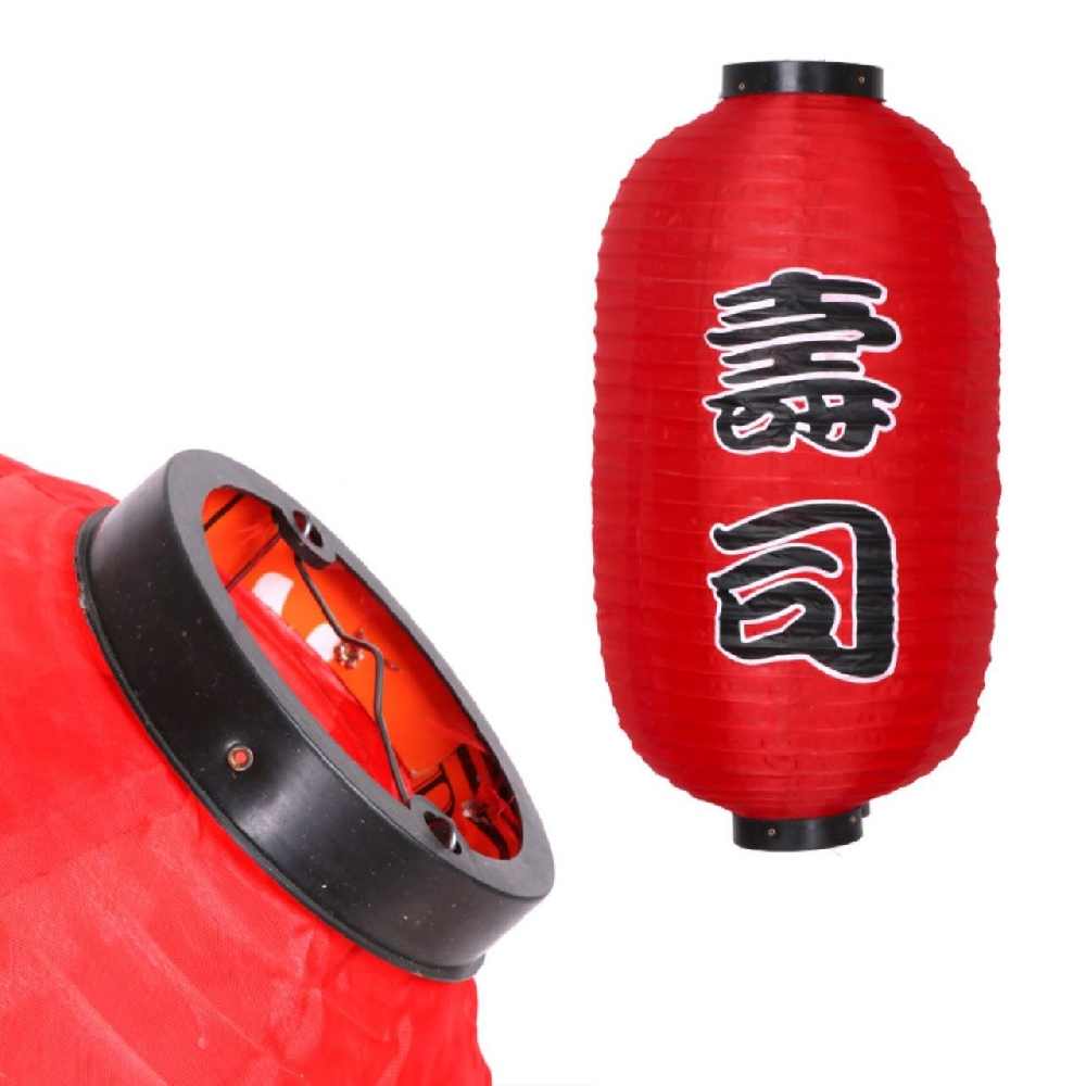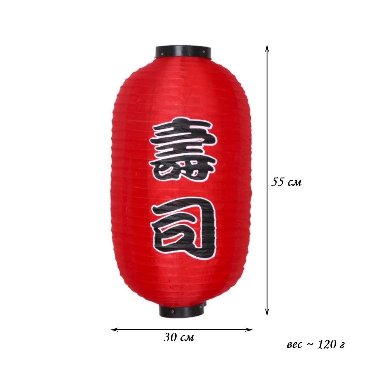 Китайский фонарь Цилиндр с надписью "Суши" 30х55 см, красный