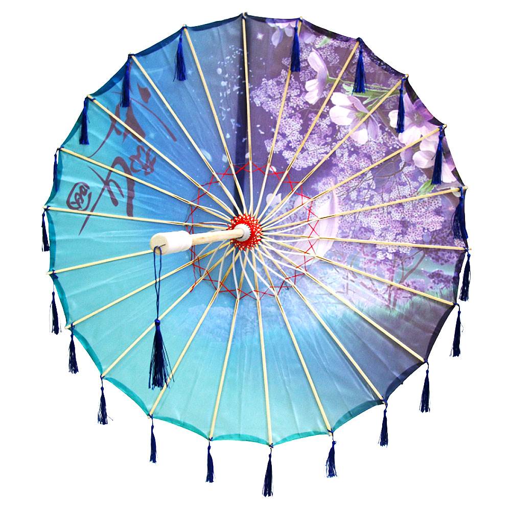 Китайский тканевый зонтик цветочный с кисточками 82х54см, №1