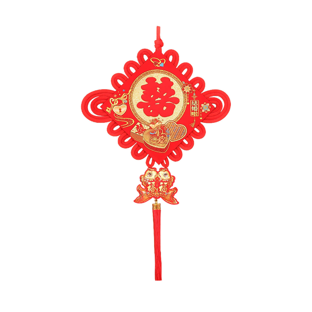 Традиционный китайский узел в форме ромба с символичным дизайном. Яркое сочетание красного бархата и золотых элементов создает эффектный акцент в интерьере.
