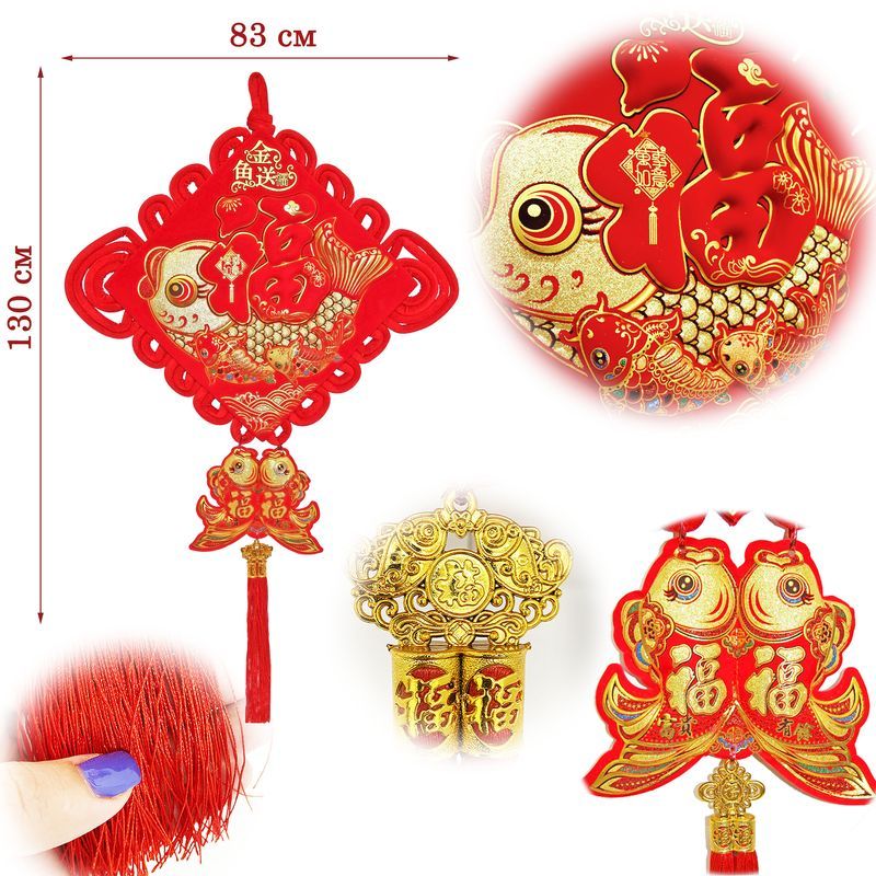 Китайский узел ромб красный рыбки 83х130см, Достаток
