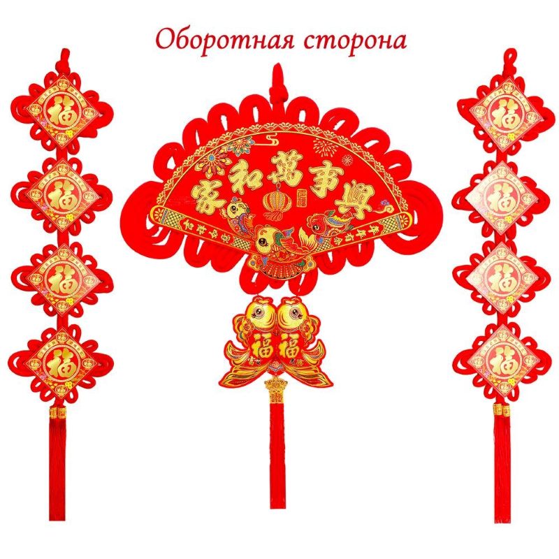 Китайский узел веер золото НАБОР 2шт (70х100см + 23х112см) рыбки, Богатство