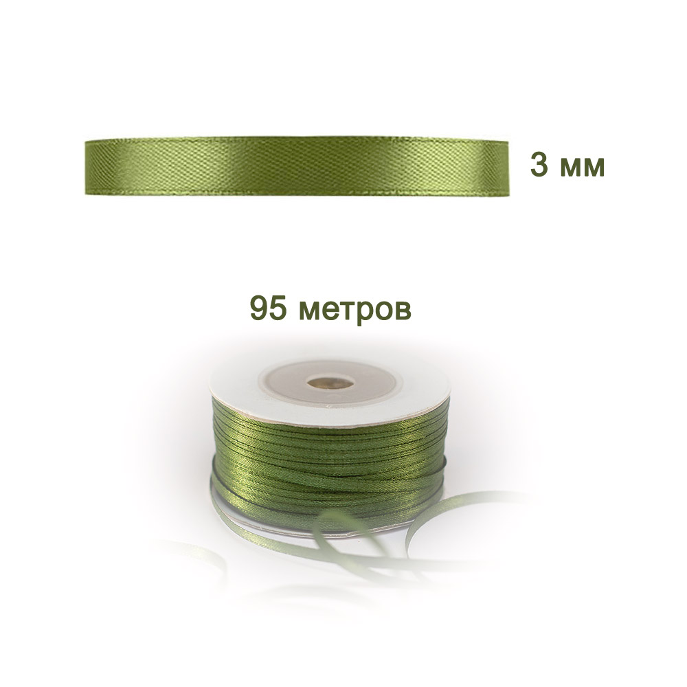 Лента атласная оливковая 3 мм х 95 м