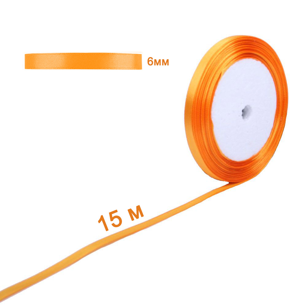 Лента атласная светло-оранжевая 6 мм х 15 м